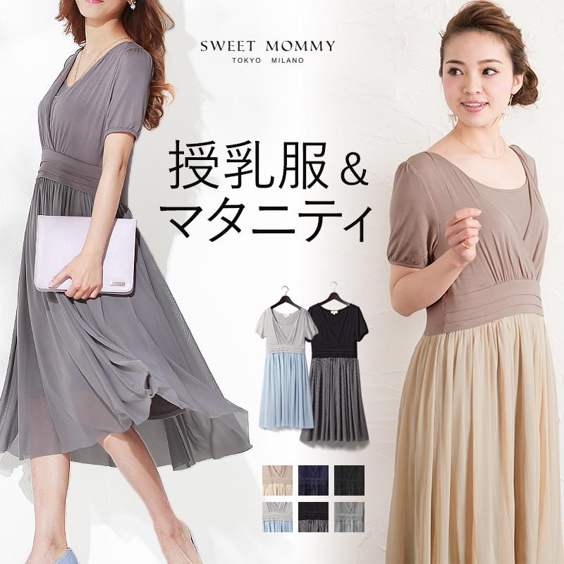 在庫限り マタニティ ワンピース シフォン切り替え 半袖 ロング 授乳服 ママスーツ 人気 So56 授乳服とマタニティ服のsweetmommy 通販 Yahoo ショッピング